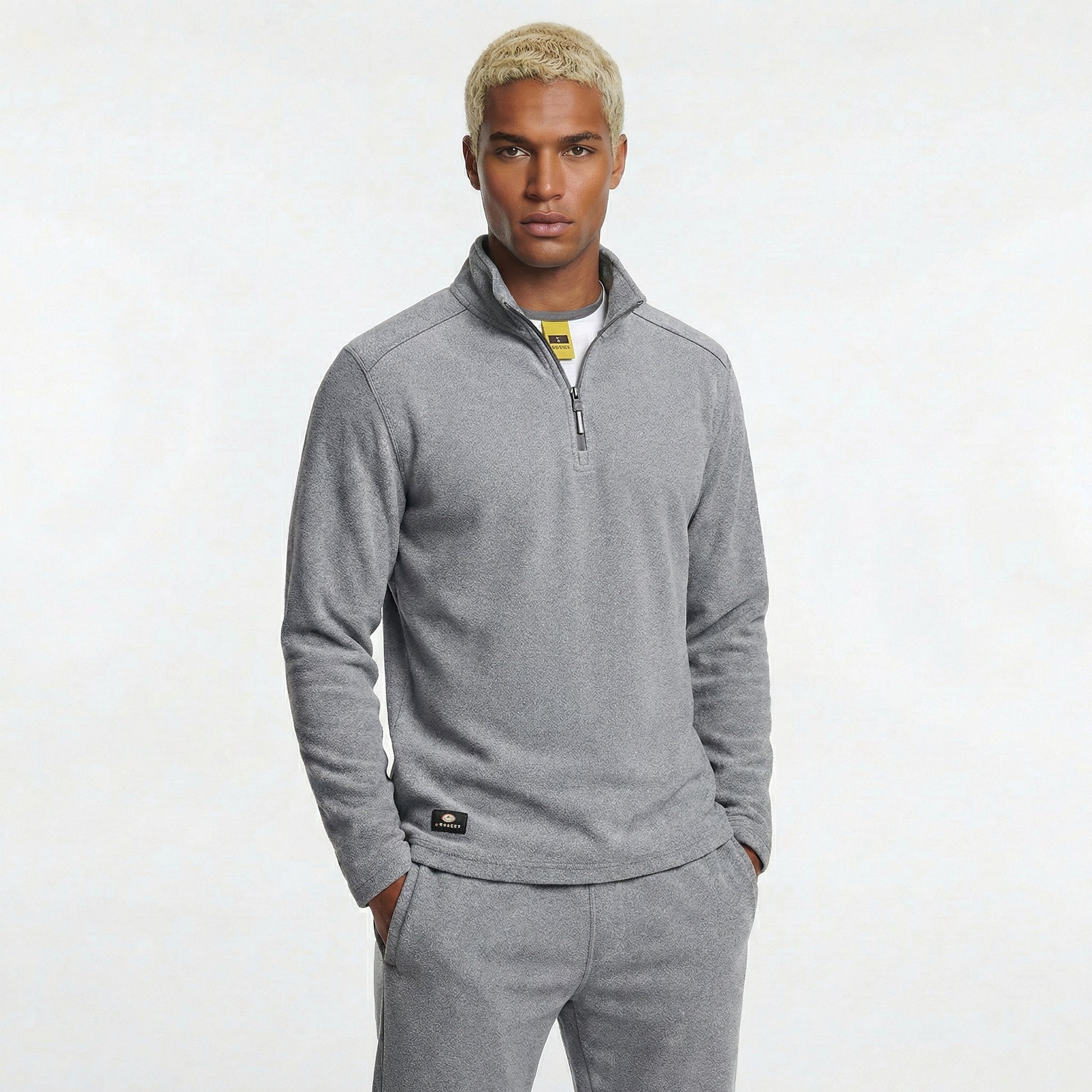 Elelegante conjunto de jersey con cremallera para hombre está diseñado para aquellos que aprecian un estilo coordinado con una comodidad superior. Confeccionado con tejido de alta calidad, este conjunto ofrece un look elegante y relajado, perfecto para ocasiones informales, viajes o para llevar a diario.